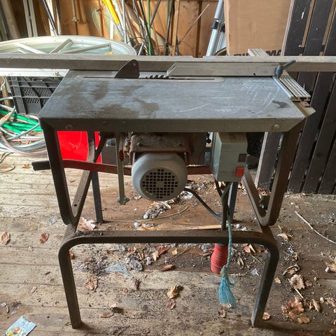 ECA bordsåg i metallutförande. Sågen är fristående på stativ med plan bordsyta och cirkelsågblad monterat ovanifrån. Maskinen har justerbara reglage och anslutningar för el på sidan. Lämplig för kapning och klyvning av trä- eller skivmaterial i verkstad eller snickerimiljö. Färg: grön med metallbord. Kan flyttas med palltruck, maskinfötter. Klinga 235 mm, långhålsborr. Uttag för spånsug.