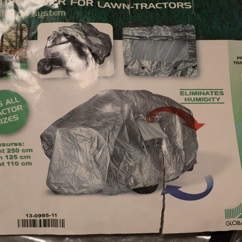 Överblivet väderskydd hos mig. Avsett för att täcka klotgrill, här 57cm grill.