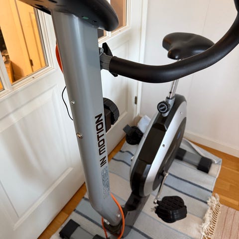 Energetics motionscykel med träningsdator. Utrustad med styre med pulssensorer och display som visar bland annat tid, hastighet och programnivåer. Flera förinställda träningsprogram kan väljas via knapparna på panelen. Justerbar sadel och stabil ram för inomhusträning i hemmet.
