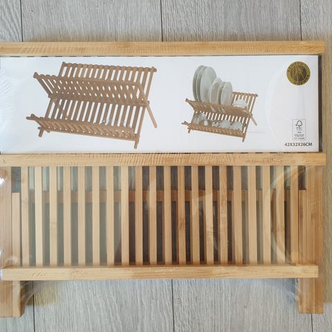 Helt nytt diskställ säljes i järn/akaciaträ.