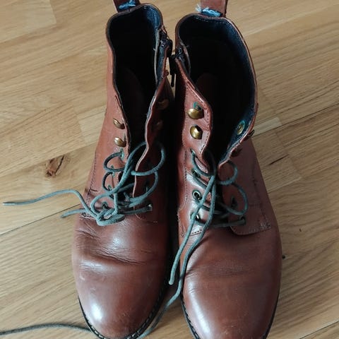 Svarta ankelboots i storlek 37. Skorna har grov sula och kort skaft som går upp över ankeln. Stängs med dragkedja på sidan. Passar till vardagsbruk under höst och vinter eller andra svalare dagar.