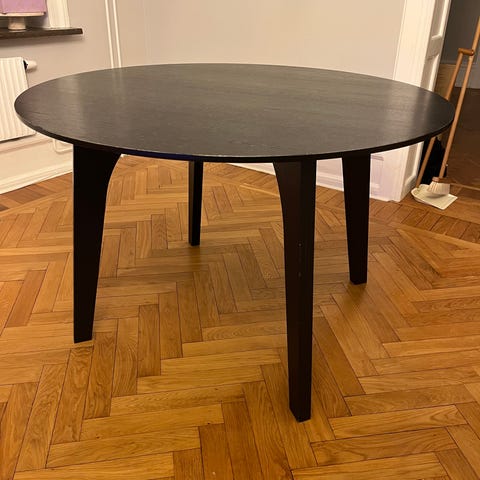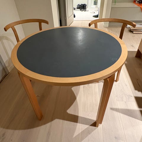 Har exakt samma färg och formspråk som Artek så detta bord har passat bra med möblerna därifrån. Artek barnstol passar perfekt till bordet höjdmässigt.