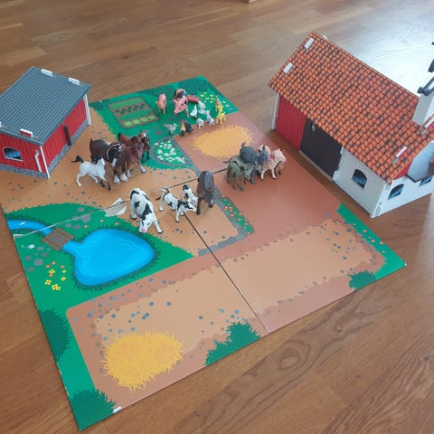 Observera att djuren på lådans framsida inte ingår, men har en del djur i plast som ni kan få på köpet.