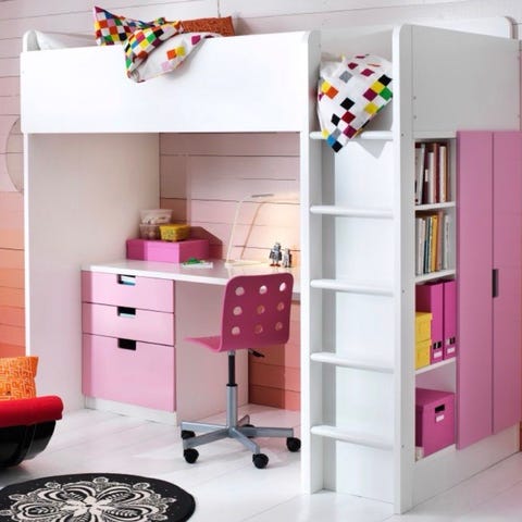 IKEA loftsäng med skrivbord och förvaring vit