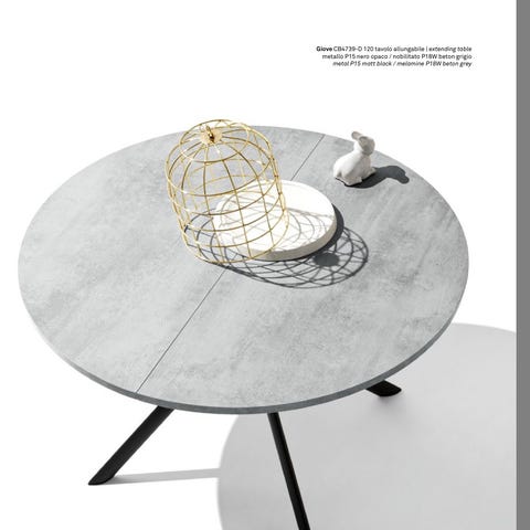 Matbordet har en utdragbar bordskiva i vitt härdad glas.