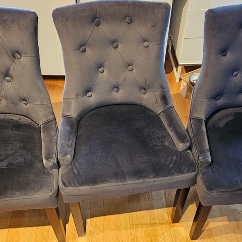 Fina matstolar från Mio. Tre av stolarna har små slitage på benen men annars i fint skick.