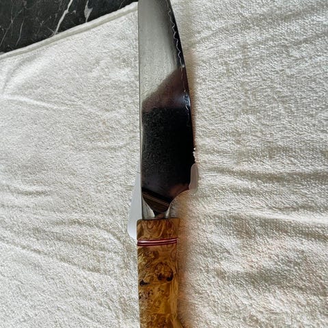 Handgjord kökskniv tillverkad i Sverige av Mikael Vallin.