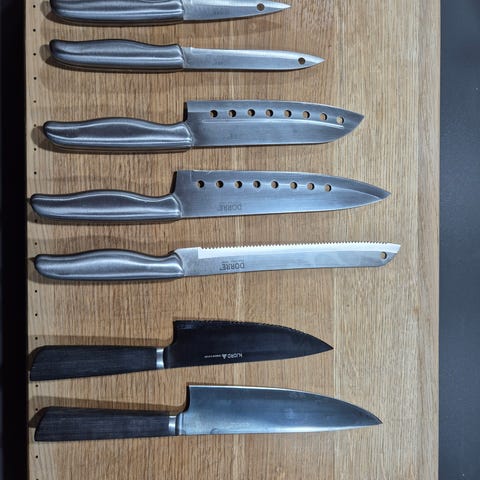Kockkniv, Santoku samt en liten skalkniv säljes.