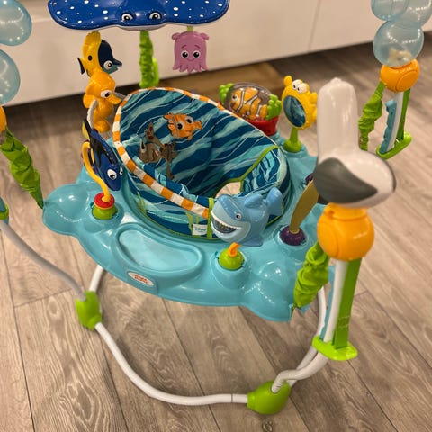 Disney babygym med undervattensmotiv. Lekmattan har färgglada tryck med fiskar och havstema samt bågar med hängande leksaker i form av bland annat fisk, sköldpadda och bläckfisk. Passar för spädbarn som behöver en mjuk plats för lek och stimulans på golvet. Babygymmet kan användas för magträning, ryggläge och tidig motorisk träning.