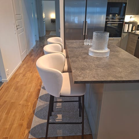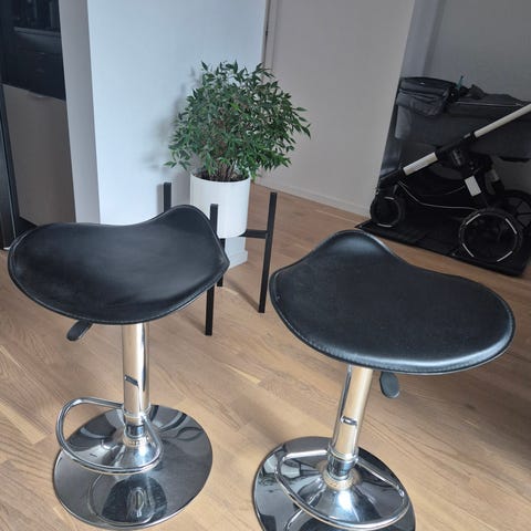 Vi ska flytta och har tyvärr inte längre användning för dessa snygga barstolar. Det är 100% sammet i svart tyg.