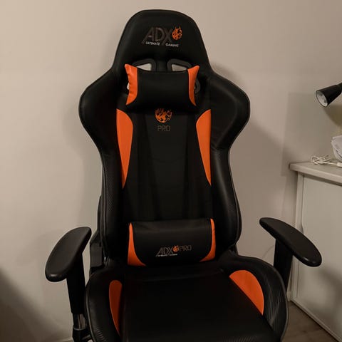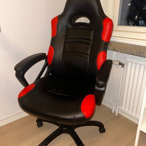 Ryggstödet är fällbart och armstöden kan justeras upp och ner. Svank- och nackkudde.