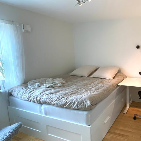 Både bäddmadrass + en fin beige sängkappa inkluderat om man önskar :)