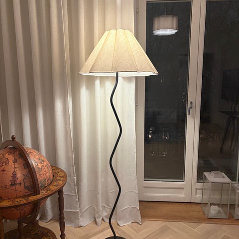 Golvlampa Swedish Modern från 1930-talet utförd i Björk, tidsenlig Art Deco, innan funkis och retro, ger ett fantastiskt fint ljus. Svenskt tillverkning, möjligen någon av de större lamptillverkarna, Böhlmarks mfl.