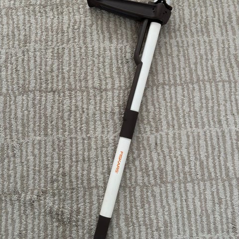 Fiskars W82 maskrosupptagare i metall. Handverktyg för att ta upp ogräs med rötterna ur gräsmatta och rabatter. Utrustad med greppvänligt handtag och klor i metall som greppar runt ogräset. Lämplig för trädgårdsarbete där man vill ta bort ogräs utan att gräva upp större ytor.