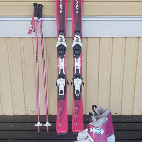 Atomic alpinskidor, Redster J2, 120 cm långa. Inga djupa skador i belaget. Dock nog enstaka ytlig repa.