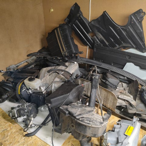 Originaldelar till Blazer K5 demonterade och ligger på pall.