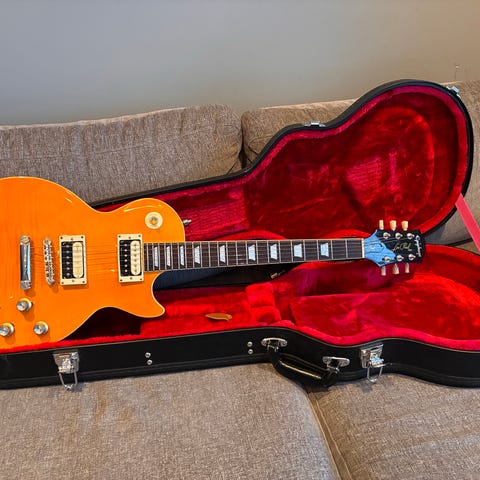 Specifikationer inkluderar solid mahognykropp med kraftigt flammig lönntopp samt limmad mahognyhals – en konstruktion som ger den klassiska, fylliga Les Paul-tonen med lång sustain och tydlig attack. En limiterad modell som redan blivit ett samlarobjekt och ett självklart val för både fans och spelare som söker klassisk rockkaraktär.