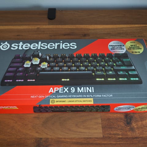 SteelSeries Apex 9 Mini tangentbord. Kompakt gamingtangentbord i 60 %-storlek med mekaniska brytare. ANSI-layout med belysta tangenter. Ansluts med kabel via USB. Passar för stationära och bärbara datorer där man vill spara plats på skrivbordet.