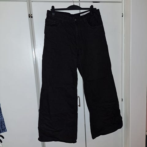Bild 1: Svarta jeans i stretch storlek 44. Lager 157. Fina men på fickorna i bak har lite av tråd lossnat, skickar bild vid intresse 😊 Endast 30kr för dom!