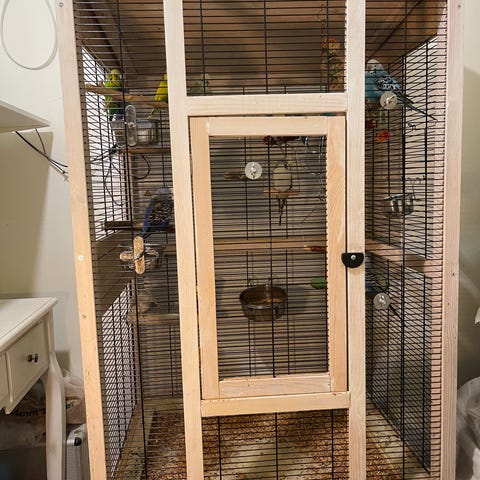 Själva buren har två egna matskålar men massa andra mat/ vatten skålar, sittpinnar och leksaker plus andra tillbehör följer med! Passar perfekt till fåglar