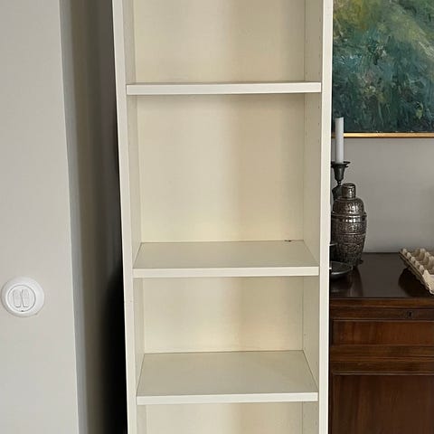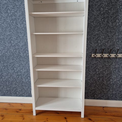 Säljer ett vit hemnes bokhylla från IKEA. 6 år gammal i bra skick, några få märken finns men syns knappt och påverkar inte funktionen.
