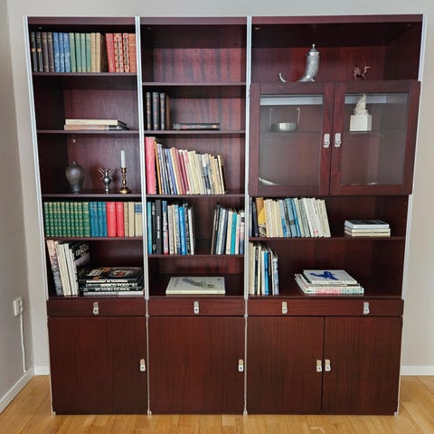 Bokhylla i jakarandabetsad furu.