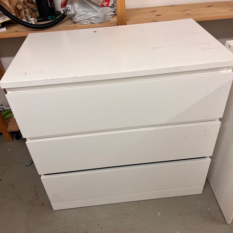 Byrå med 4 lådor vit och ljusgrå trä