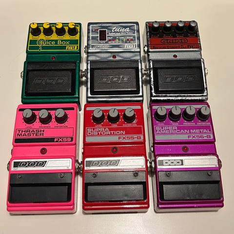 Marshall-pedaler tillverkade i England, dvs. ursprungsversionerna.