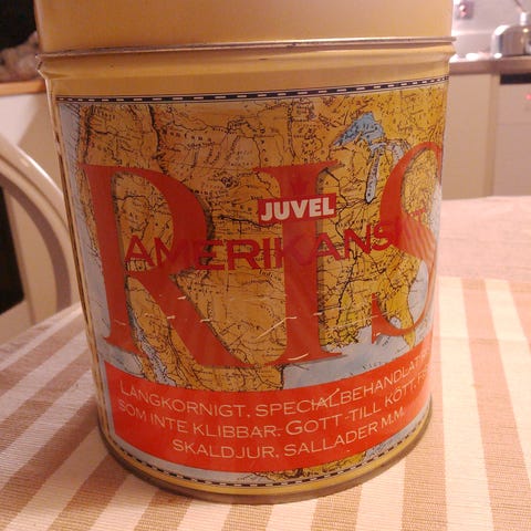Gul vintage plåtburk lonka. 1920-2010. Höjd 17.5 cm. Bredd 15 cm. Djup 10 cm