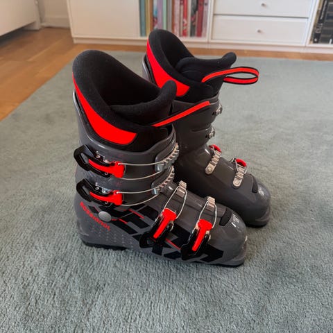 Skidpjäxor i storlek 245 med sulmått 285 mm. Färgkombination svart med röda detaljer och röd innersko. Modellen har fyra spännen framtill och justerbart spänne upptill för att kunna anpassa passformen runt fot och underben. Passar för alpin skidåkning.