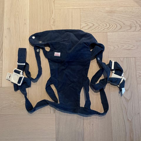 Babysele i svart färg. Modellen har axelband som knäpps runt kroppen för att bära barnet på bröstet. Selen har en hög ryggdel för stöd samt öppning för benen. Passar för att bära spädbarn och småbarn nära kroppen vid promenader eller vardagsaktiviteter.