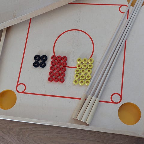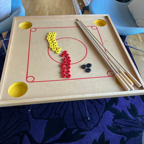 Kurong/Coronnebord med ställning, två köer och ringar. Som nytt.