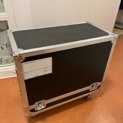 Flightcase rack i svart med förstärkta aluminiumprofiler och metallhörn.