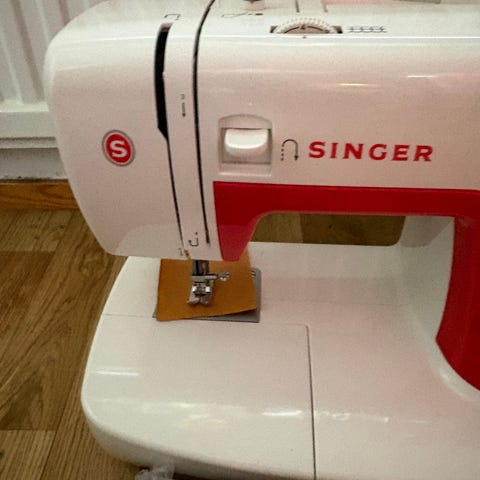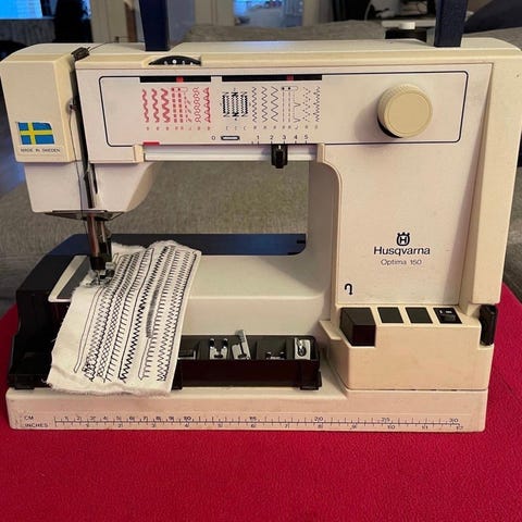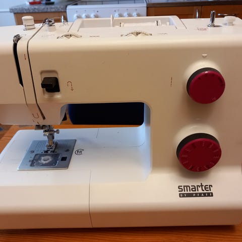 Strömkabel saknas men symaskinen är i stort sätt oanvänd.