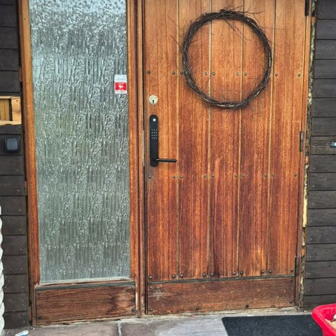 Kopplat brunt Brytskydd för säkrare ytterdörr.