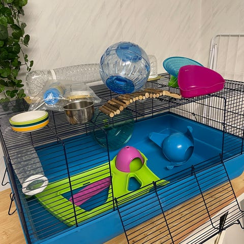 Säljer ett komplett paket med tillbehör för smådjur såsom hamster eller mus. Allt säljs tillsammans.