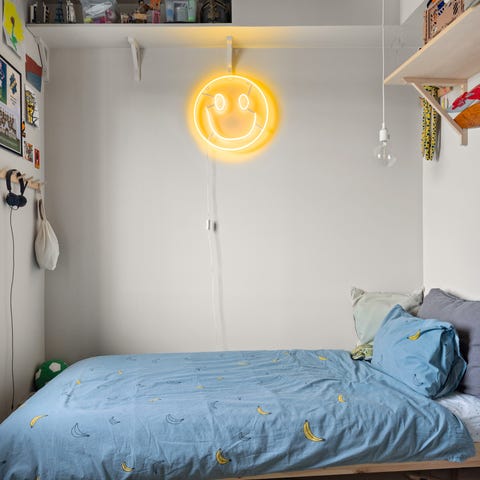 IKEA loftsäng i metall. Sängen har stege framtill och skyddsräcken runt om liggytan. Konstruktionen är öppen under sängen vilket ger plats för exempelvis skrivbord, förvaring eller sittplats. Passar ett standardmadrassmått för enkelsäng. Neutral metallfärg som fungerar i olika typer av rum och inredningsstilar. Madrass 90 ingår.