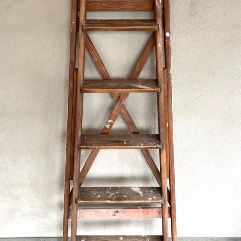 Nu har du chansen att förvärva en läcker inredningsdetalj som blir kronan på verket i ditt sparsmakade hem,en klassisk målarstege i massivt trä med decennier av upparbetad patina,förgyll ditt hem med denna härliga arbetarklenod och låt någon annas hårda arbete bli en snackis runt dina middasbjudningar.