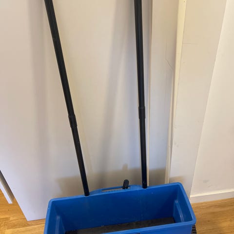 Gardena spridare i blå plast med två hjul och handtag. Avsedd för spridning av till exempel gödsel, frö eller sand på gräsmatta och gångar. Utrustad med handtag med reglage för att justera mängden material som sprids. Lämplig för trädgårdsbruk och underhåll av utomhusytor.