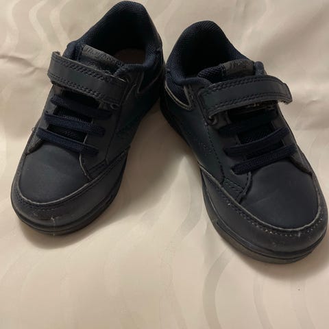 Sparsamt använda av ett barn, inga synliga fel.Modellen är vit med två kardborreband över foten för enkel av- och påtagning. Ovandelen är i syntetmaterial med vadderad kant runt ankeln för extra komfort. Yttersulan är mönstrad för bättre grepp. Passar som vardagsskor för mindre barn.