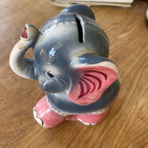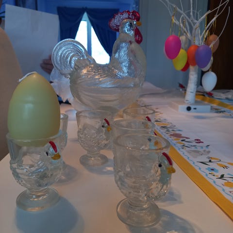 En söt liten keramikfigur av en gullig liten kyckling. Figuren är vit med gula detaljer och har en gul rosett runt halsen.