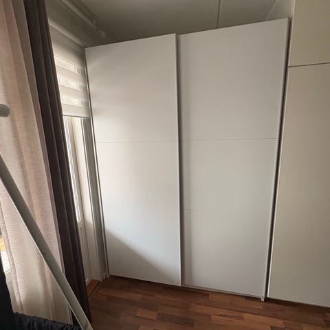 Den större är 100cm bred och den mindre är 50 sm bred. Två lådor i trä, en stor trådback, två hyllplan och klädstång ingår till den stora garderoben.