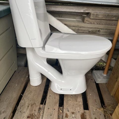 Vit toalettstol i golvstående utförande. Modellen har integrerad cistern och sits. Anslutningar för vatten och avlopp sitter baktill och i golvet. Passar för installation i badrum eller toalettutrymme där standard wc-stol önskas.