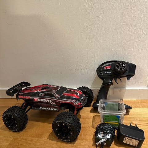 Traxxas radiostyrdbil. Detta är en toppen bil för nybörjare och mer seriösa användare. Den är vattentät och tvåhjulsdrivet. Den fungerar på alla underlag.