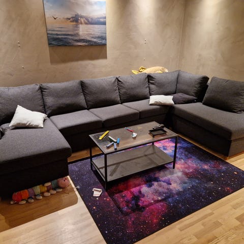 Säljer min stilrena och rymliga U-soffa Friday Large med högervänd divan i svart konstläder, inköpt på Chilli år 2022.