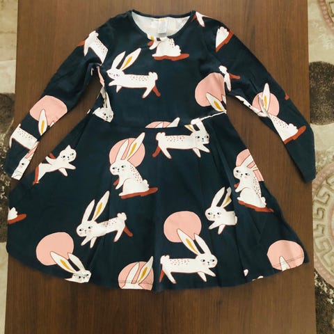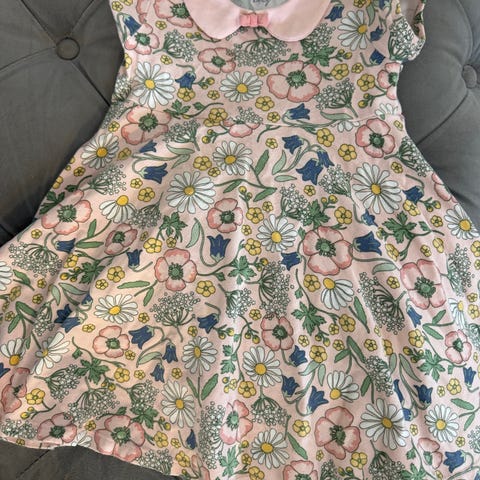 Lindex klänning för barn, i bra skick, storleken är 122, tvättat med parfymfritt tvättmedel, kommer från djur och rökfritt hem, finns i Nacka, kan skickas mot fraktkostnaden.