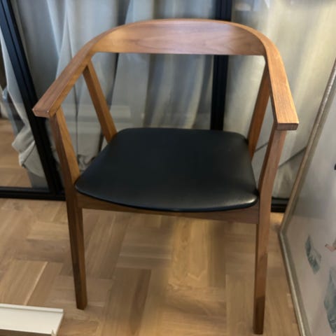 En stol av modellen "Stockholm" från IKEA. Detta är modellen som gavs ut med start 2013 och som nu utgått ur sortimentet. Detta är även den variant där sitsen är i valnötsfanér istället för skinnklädsel.