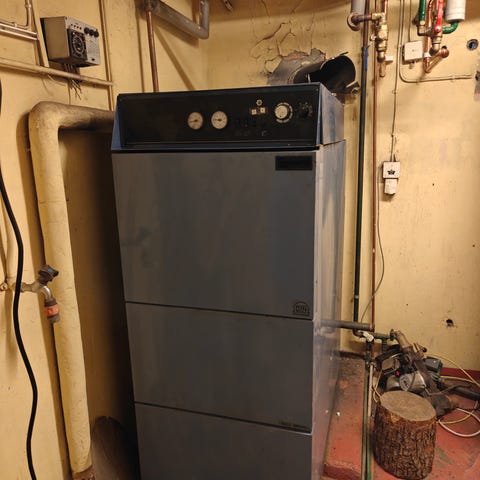 HS Tarm panna för uppvärmning. Modellen är utrustad med frontpanel med manometrar och reglage. Alla 3 Tankarna medföljer där en av dem är för varmvatten. Finns även en hel del saker för montering.
