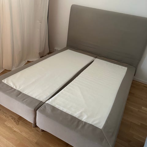 IKEA säng med grå stoppad gavel