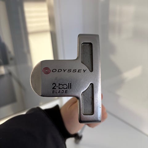 Odyssey 2-Ball Ten putter. Mallet-huvud med 2-ball-sikte och svart/vit design. Skaft i röd/svart färg med Odyssey-grepp. Passar för golfspelare som vill ha en putter med tydlig siktlinje och stabilitet vid puttning på green.